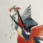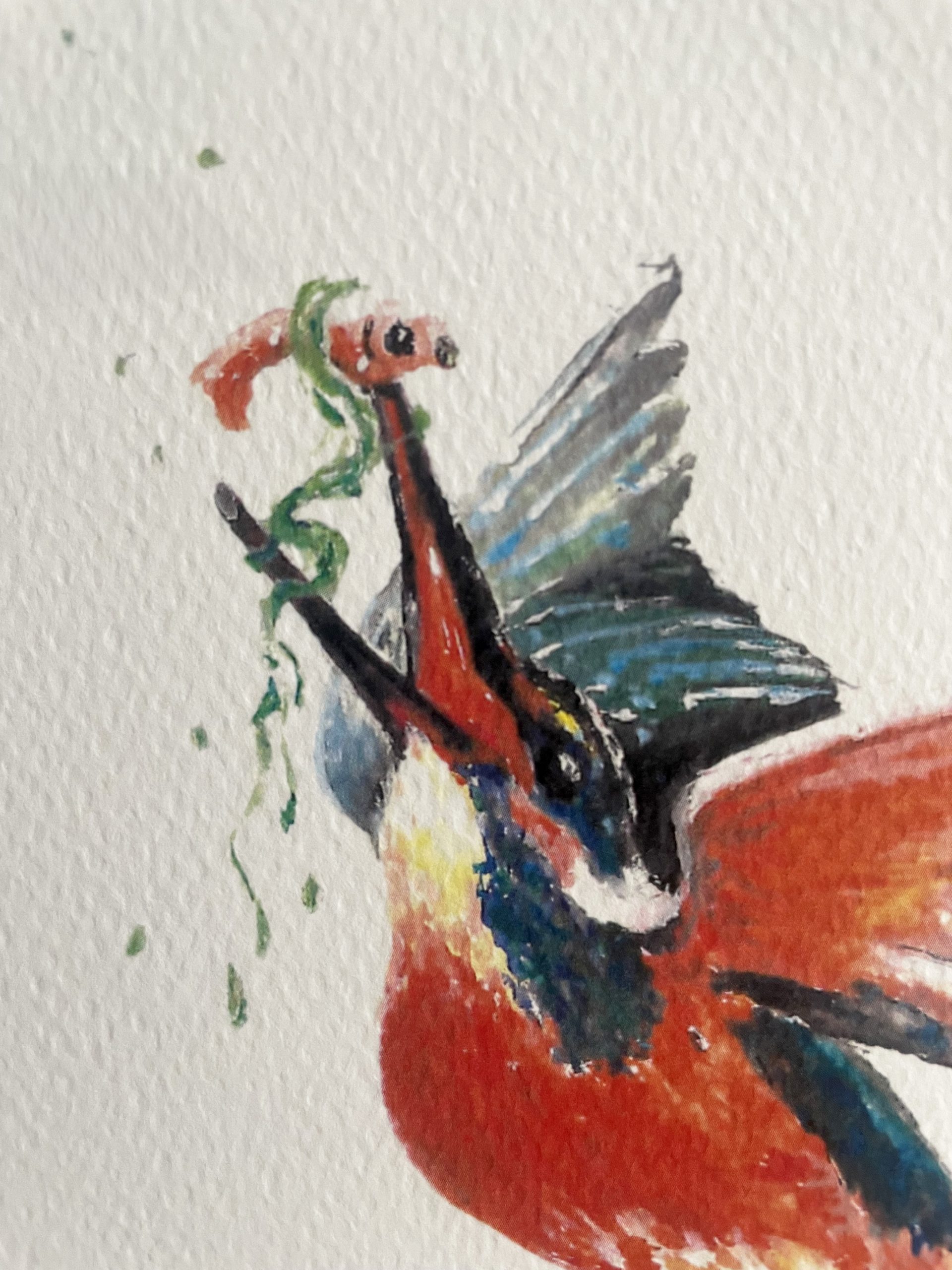 Peinture à l’acrylique reproduite sur une affiche format A5, signée à la main.